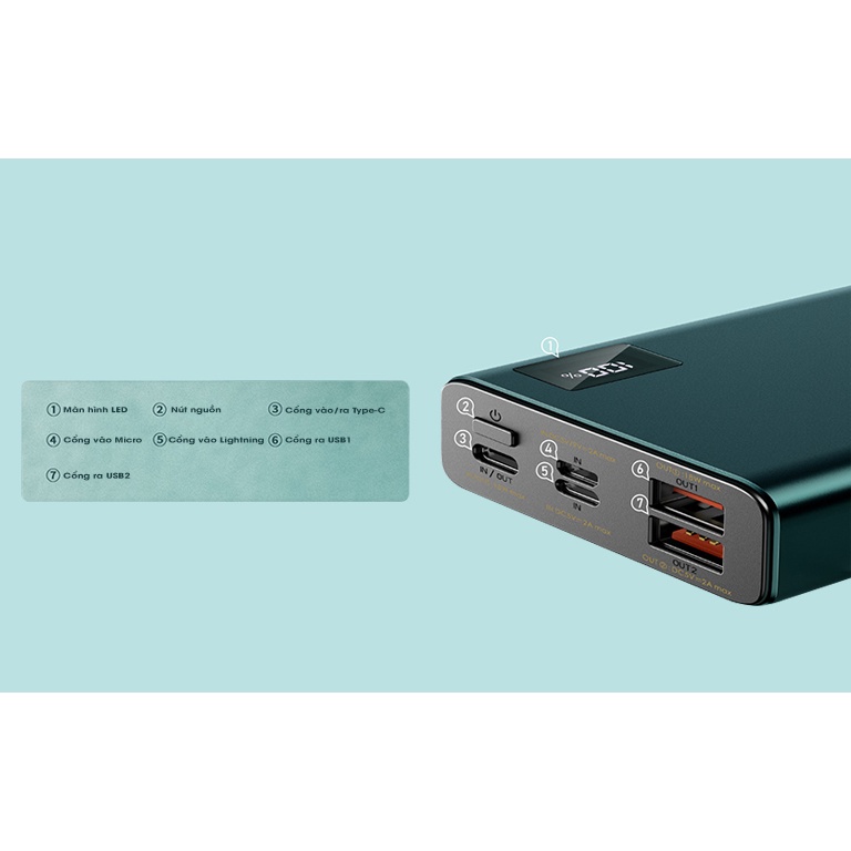 Cục pin sạc dự phòng 20000mAh này cũng bố trí một màn hình kỹ thuật số trên bề mặt pin giúp hiển thị chính xác lượng pin còn lại. Nhờ đó, bạn có thể dễ dàng trong việc nạp hoặc xả pin theo đúng nhu cầu, tránh tình trạng ngắt quãng.