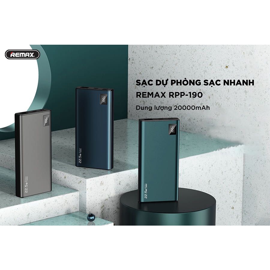 Giới thiệu [Mã 153ELSALE2 giảm 7% đơn 300K] Pin sạc dự phòng Remax RPP-190 20000mAh Công Suất Sạc Nhanh 22.5W