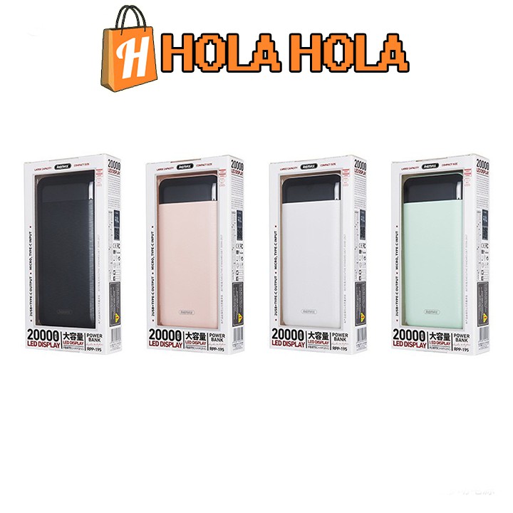 Pin sạc dự phòng Remax RPP-195 20000mAh 2 cổng USB tích hợp màn hình LED hiển thị dung lượng*Lưu ý: Sản phẩm trước khi giao sẽ được khui seal để dán tem bảo hành lên sản phẩm cho quý khách.