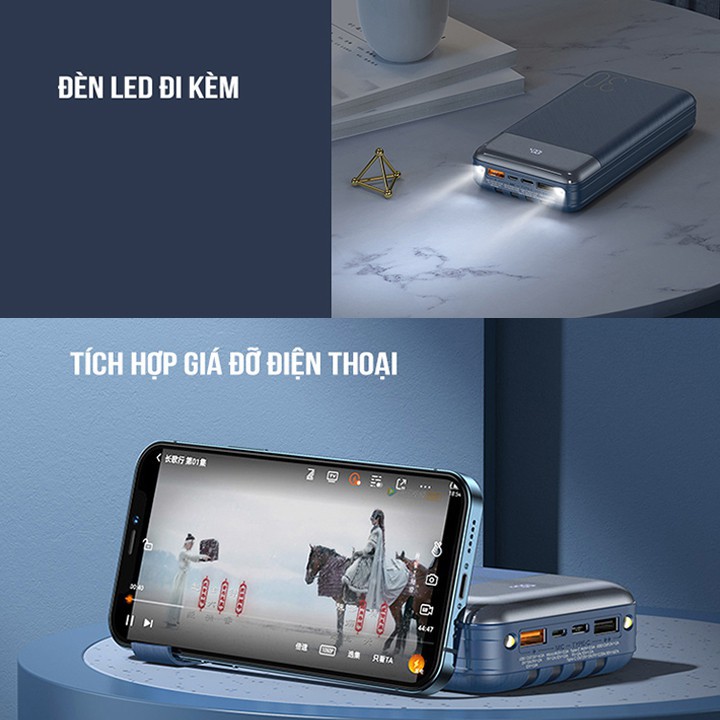 Với ưu điểm 3 cổng sạc vào MicroUSB, TypeC, Lightning mang lại sự tiện lợi hơn bao giờ hết. Bạn có thẻ dùng bất kì cáp sạc nào trong 3 cổng trên để sạc cho pin.