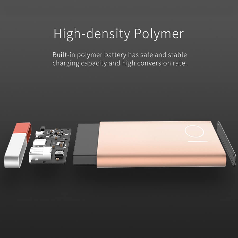 Lõi pin Lithium Polymer có độ bền cao hơn hẳn so với pin Li-ion, cho bạn thời gian sử dụng lâu dài. Bên cạnh đó, với dung lượng 10000 mAh cho bạn sạc đầy thiết bị một cách nhanh chóng.