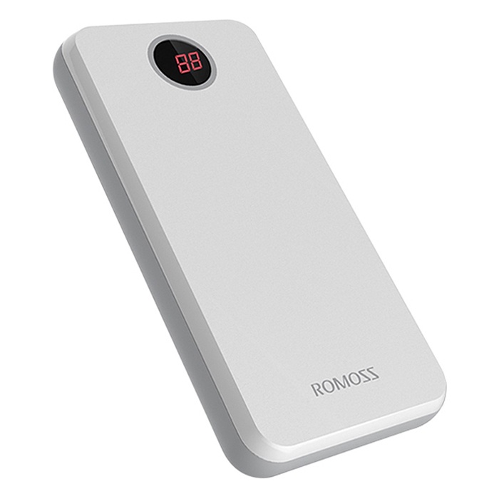 Sạc dự phòng Romoss HO20 trắng có tích hợp một màn hình nhỏ có chức năng hiển thị chi tiết % pin hiện tại của pin sự phòng để bạn kiểm soát được dung lượng pin dễ dàng.