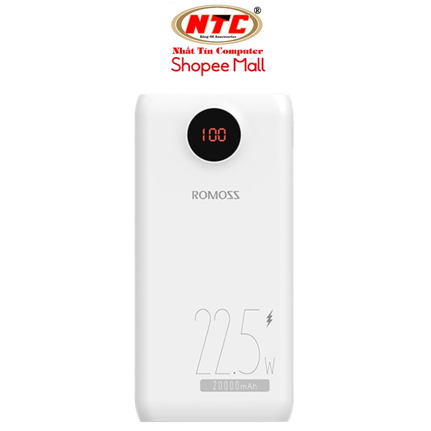 Pin sạc dự phòng Romoss PHO20 PF 20000mAh TypeC PD 18W USB 22.5W, màn hình LCD (Trắng) - Hãng phân phối