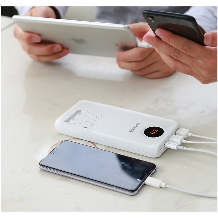 Điện Thoại & Phụ Kiện > Pin sạc dự phòng > 10000 - 20000mAh || Pin sạc dự phòng Romoss PHO20 20000mAh TypeC PD 18W USB 22.5W, màn hình LCD (Trắng) - Nhất Tín ComputerCòn hàng