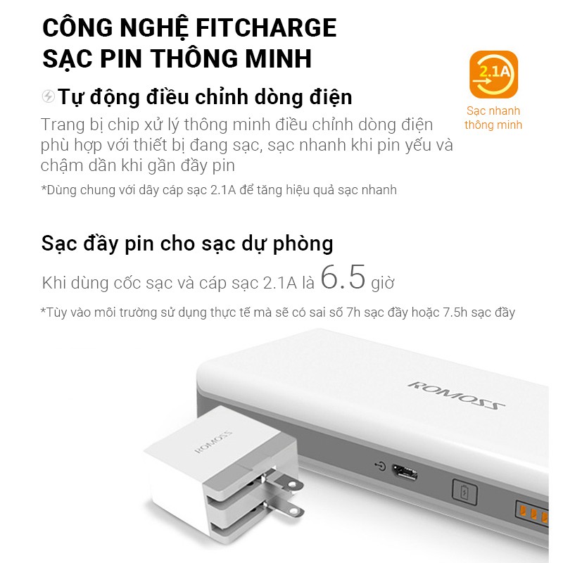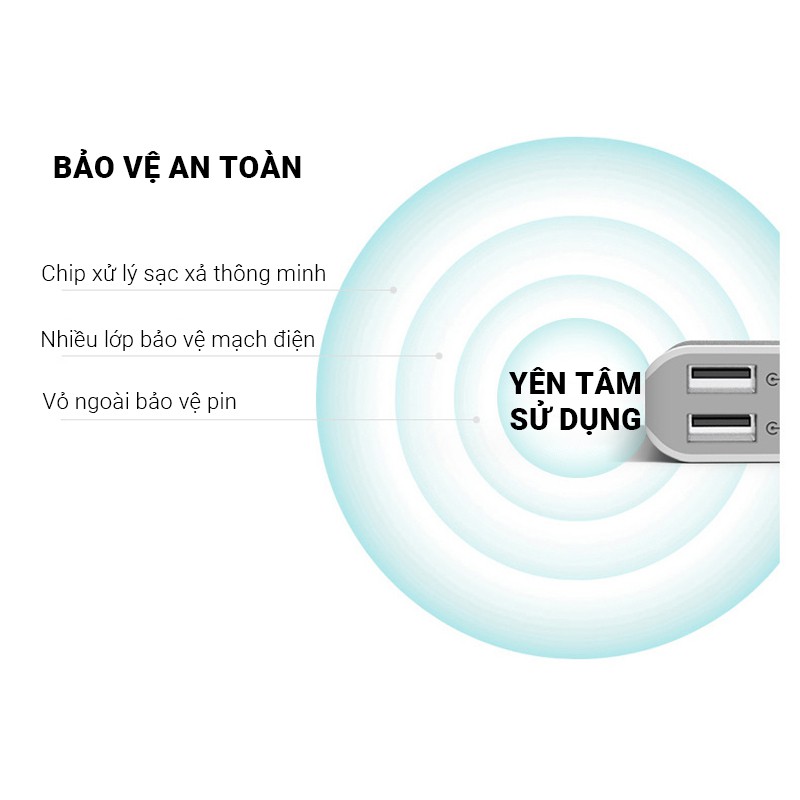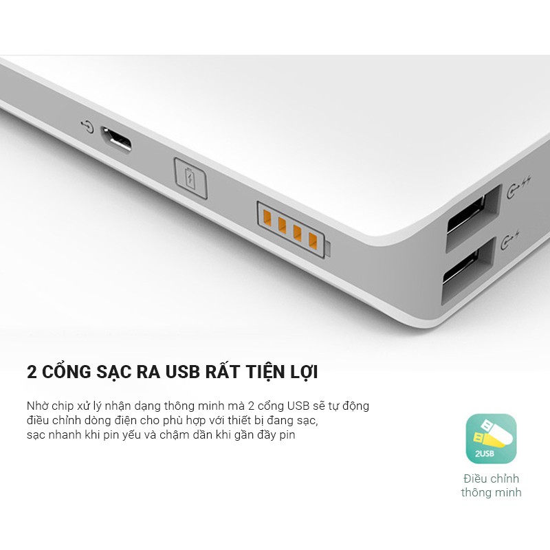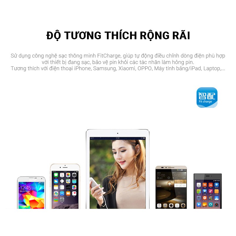 - Sạc nhanh thông minh nhờ chip xử lý tự động điều chỉnh dòng điện phù hợp với thiết bị đang sạc, không gây hư hại cho pin