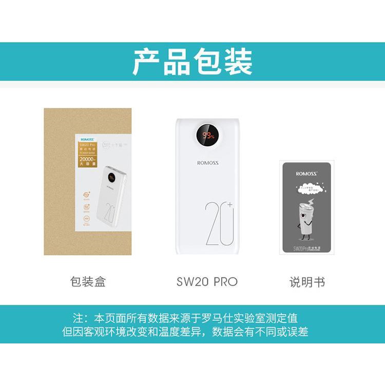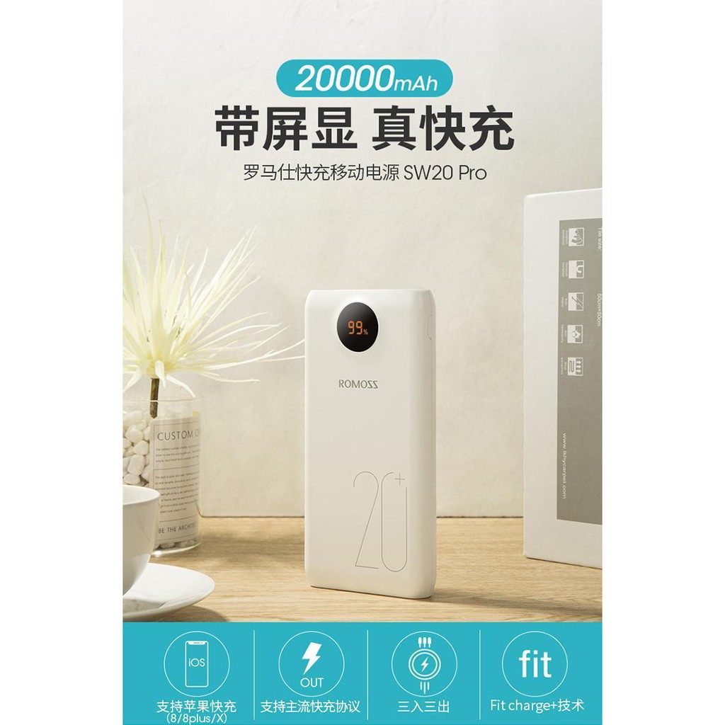 Sạc dự phòng Romoss SW20 Pro 20000mAh hỗ trợ sạc nhanh QC 3.0 và PD 18W TypeC (Trắng) + Tặng cáp Baseus 1 đầu 2 chân 23cm - Hãng phân phối chính thứcPin Sạc dự phòng Romoss SW20 Pro 20000mAh hỗ trợ sạc nhanh QC3.0 và Sạc nhanh 2 chiều TypeC (Trắng)