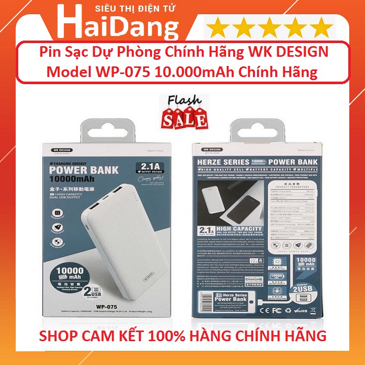 Điện Thoại & Phụ Kiện > Phụ kiện > Sạc dự phòng & Pin > Sạc dự phòng || Pin Sạc Dự Phòng, Sạc Dự Phòng WK DESIGN WP-075 10.000mAh Chính Hãng ( có ảnh thật )Còn hàng