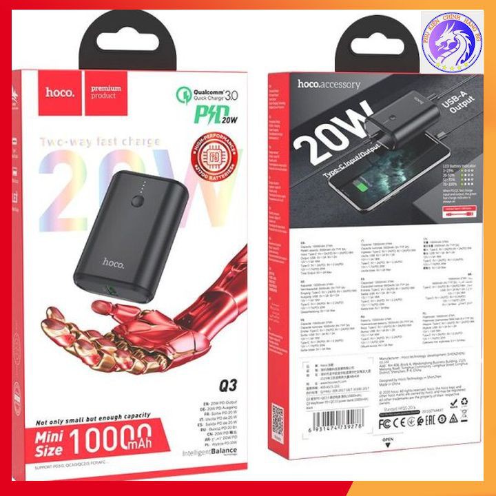 Pin sạc dự phòng Hoco Q3 Mayflower 10000mAh lõi Li-polymer, hỗ trợ QC3.0 và PD20W Type-C - Hãng phân phối chính thứcThông số sản phẩm: