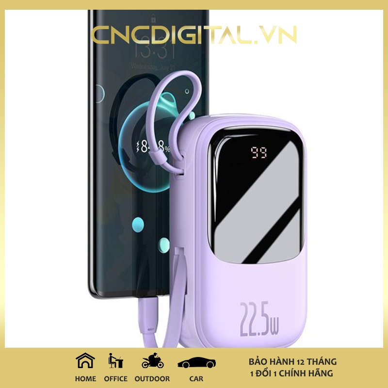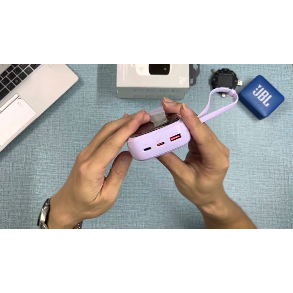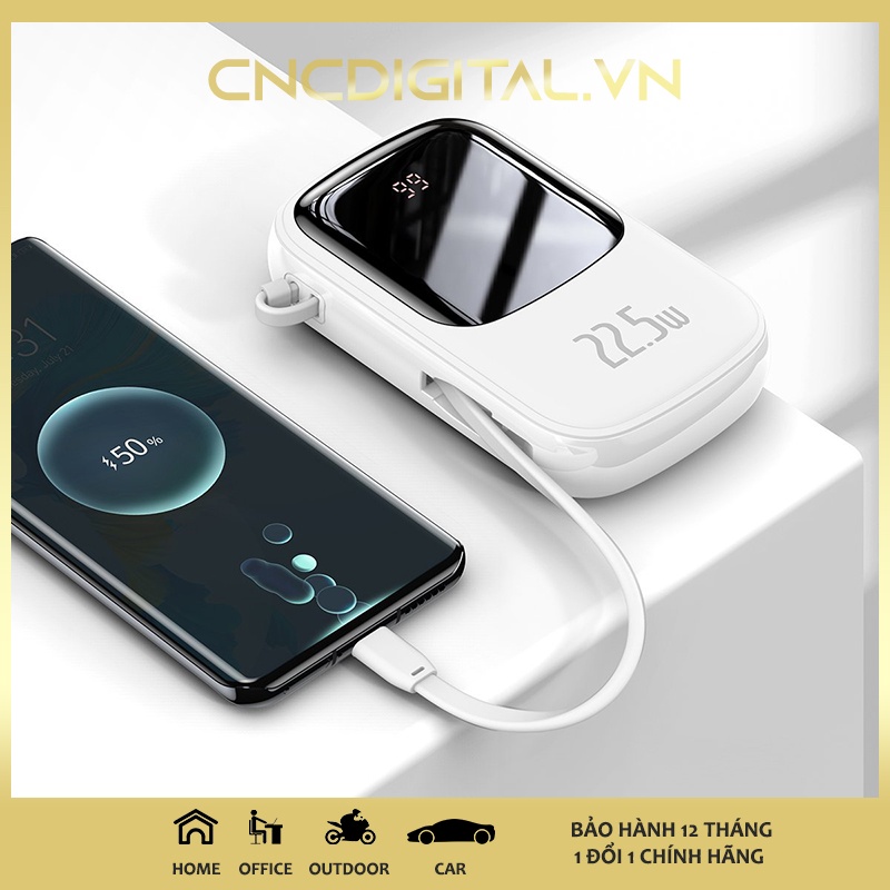- Sản phẩm được trang bị sẵn 1 dây sạc chuẩn Type C có chiều dài 19cm . Dây sạc này làm bằng chất liệu TPE mềm dẽo và linh hoạt, có thiết kế thông minh dễ dàng tháo lắp, khi gắn vào chỉ như một dây đeo tiện dụng cho pin . Thiết kế này mang đến sự gọn gàng và tiện dụng cho pin sạc .