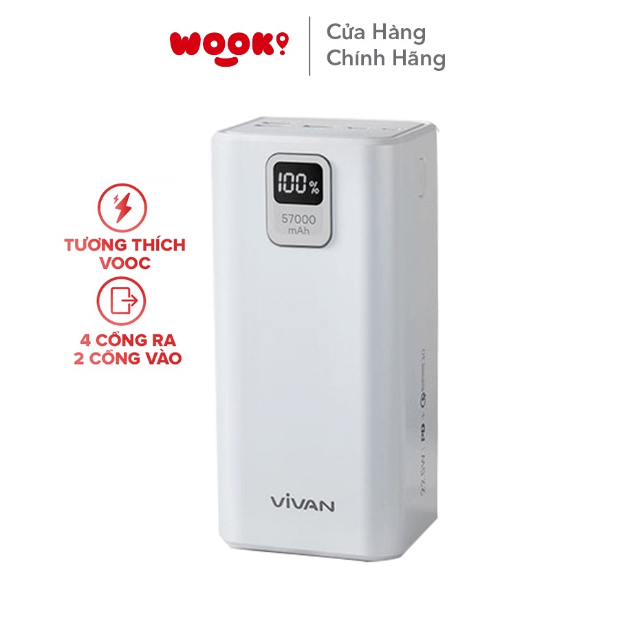Pin Sạc Dự Phòng Sạc Nhanh Dung Lượng Lớn 57000Mah Vivan VPB-B60 2 Input Micro USB Type-C And 4 Output 3 USB-A 1 Type C