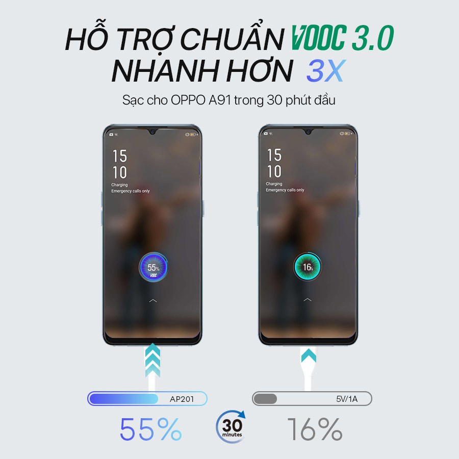 Hỗ trợ chuẩn VOOC nhanh hơn 3 lần, các dòng Apple từ iPhone 8 trở lên hỗ trợ sạc nhanh đến 50% trong 30 phút đầu, sạc nhanh, tiết kiệm thời gian