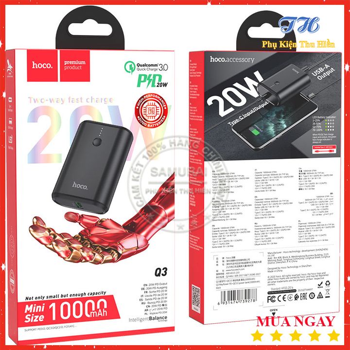 Điện Thoại & Phụ Kiện > Phụ kiện > Sạc dự phòng & Pin > Sạc dự phòng || Pin Sạc Dự Phòng Sạc Nhanh Hoco Q3 Mayflower 10000mAh Lõi Li-Polymer, Hỗ Trợ QC3.0 Và PD20W Type-C - Chính HãngCòn hàng