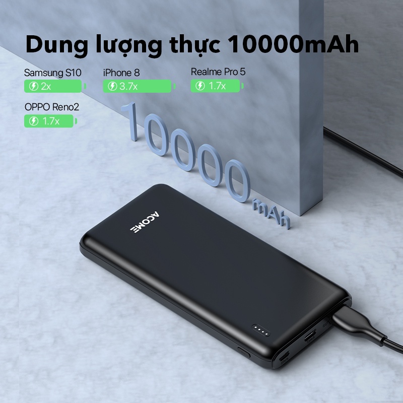 Giới thiệu Pin Sạc Dự Phòng Sạc Nhanh Công Suất ACOME AP108 Dung Lượng 10000mAh Hàng Chính Hãng Bảo Hành 12 Tháng 1 Đổi 1