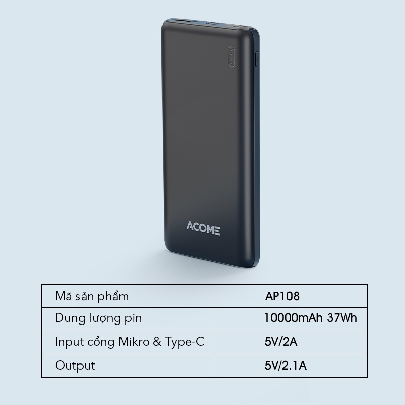 Điện Thoại & Phụ Kiện > Phụ kiện > Sạc dự phòng & Pin > Sạc dự phòng || Pin Sạc Dự Phòng Sạc Nhanh Công Suất ACOME AP108 Dung Lượng 10000mAh Hàng Chính Hãng Bảo Hành 12 Tháng 1 Đổi 1Còn hàng