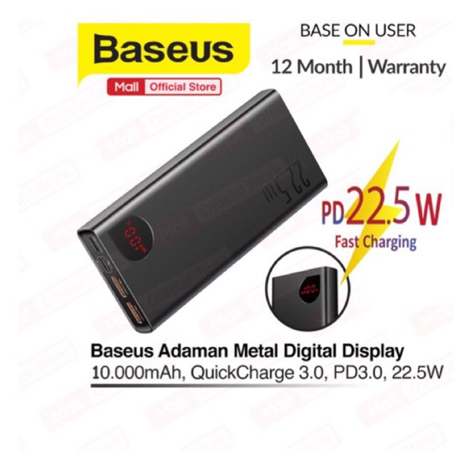 Pin sạc dự phòng Baseus Adaman Metal DigitalDisplay dung lượng 10.000mAh, PD 18W, QuickCharge 3.0 22.5W (2xUSB + Type-C)Dung lượng: 10.000mAh
