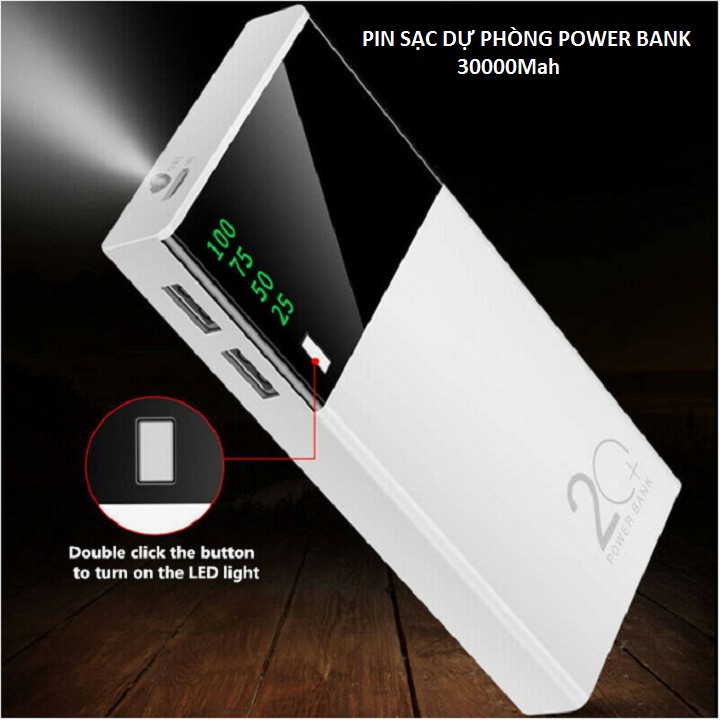 Pin Sạc Dự Phòng Power Bank Dung Lượng 30000mAh Màn LED Có Đèn Pin Chiếu Sánggiới thiệu: