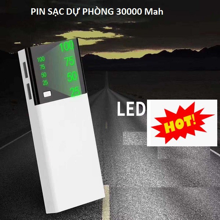 Pin Sạc Dự Phòng, Sạc Power Bank Dung Lượng 30000mAh Màn LED Có Đèn Pin
