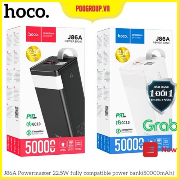Pin Sạc Dự Phòng Siêu Khủng 50000mAh Chính Hãng Hoco J86A Hỗ Trợ Sạc Nhanh, Có Đèn Pin, Màn Hình BH12 Tháng Poogroup