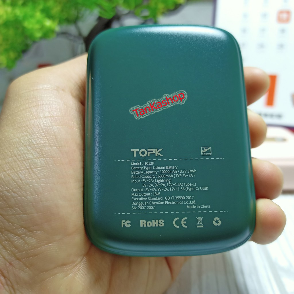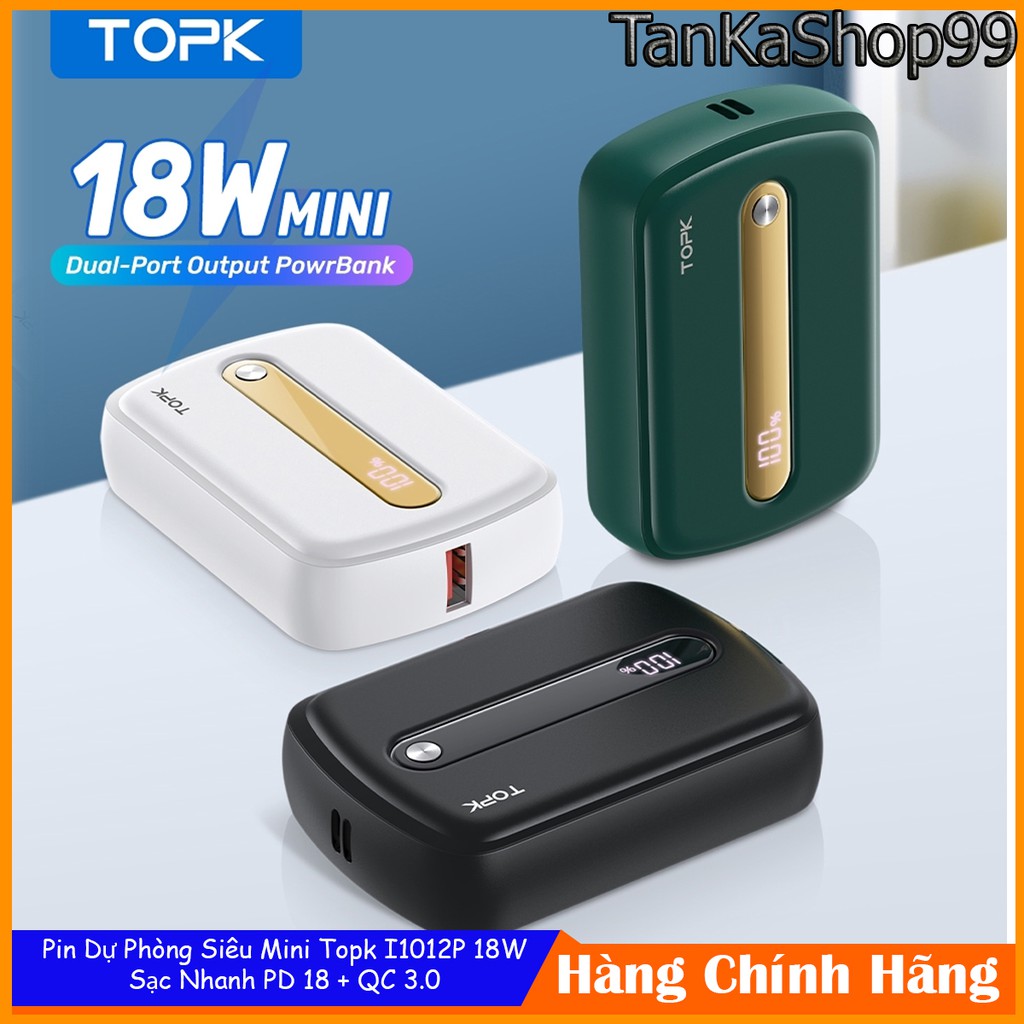 *TankaShop99*Pin Sạc Dự Phòng Siêu Mini Topk I1012P 10.000mAh, Sạc Nhanh PD 18W, QC 3.0,