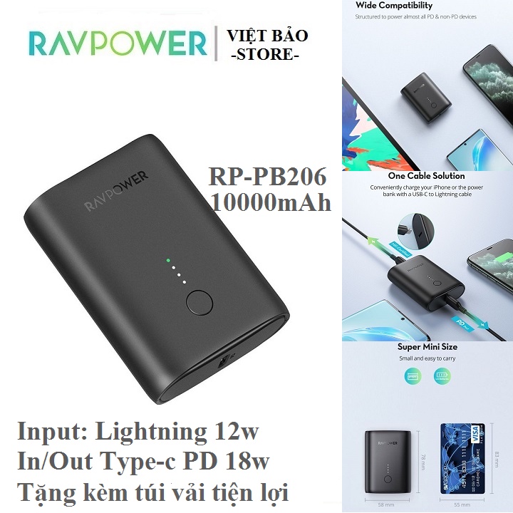 Giới thiệu Pin sạc dự phòng Siêu Nhỏ RAVPower RP-PB206 10000mAh In out PD 18w