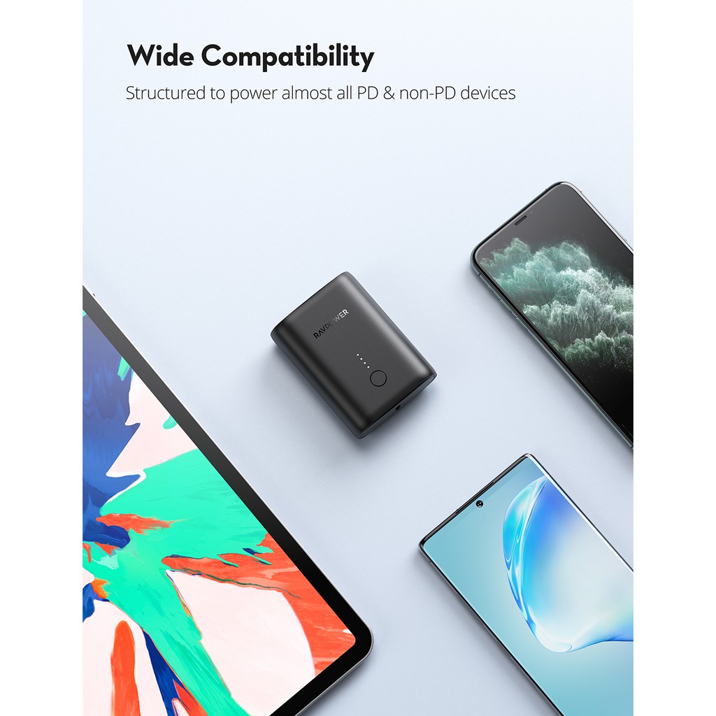 Pin Sạc Dự Phòng Siêu Nhỏ RAVPower RP-PB194 10000mAh + PD 18W + QC3.0 Kèm Túi Đựng - Hàng Chính Hãng