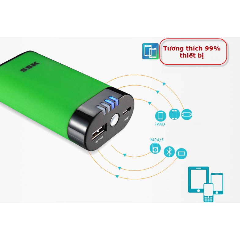 Pin sạc dự phòng SSK SRBC 506 dung lượng 5000mAh 1 cổng USB có đèn led 4 đèn hiển thị dung lượng pinThương hiệu SSK - hàng chính hãng