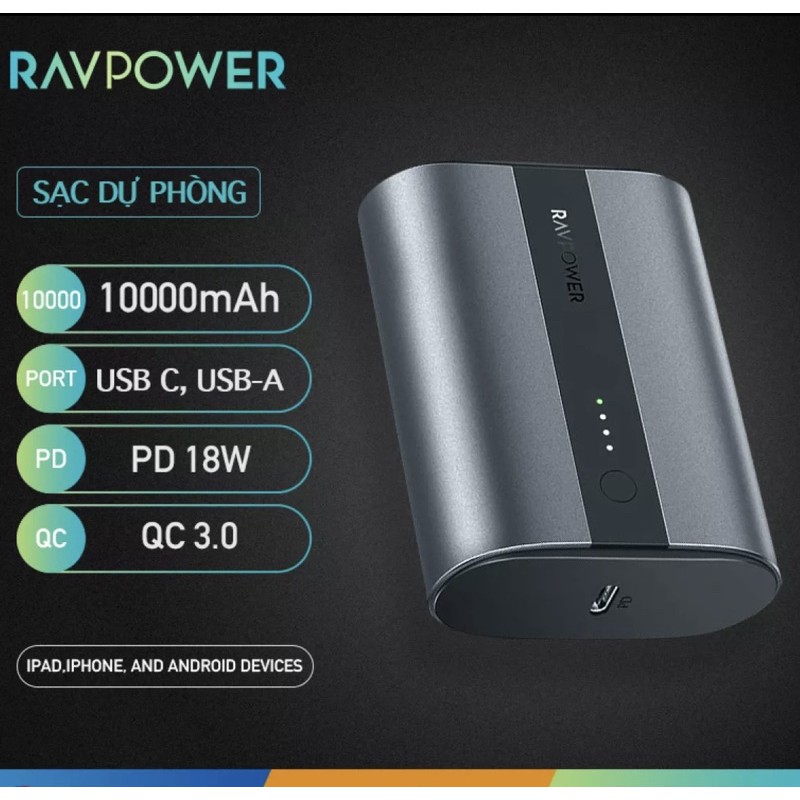 Điện Thoại & Phụ Kiện > Pin sạc dự phòng > 5000 - 10000mAh || Pin sạc dự phòng Super Mini, thân NHÔM RavPOWER RP-PB197 10000mAh PD 3.0 18W & QC 3.0 18WCòn hàng