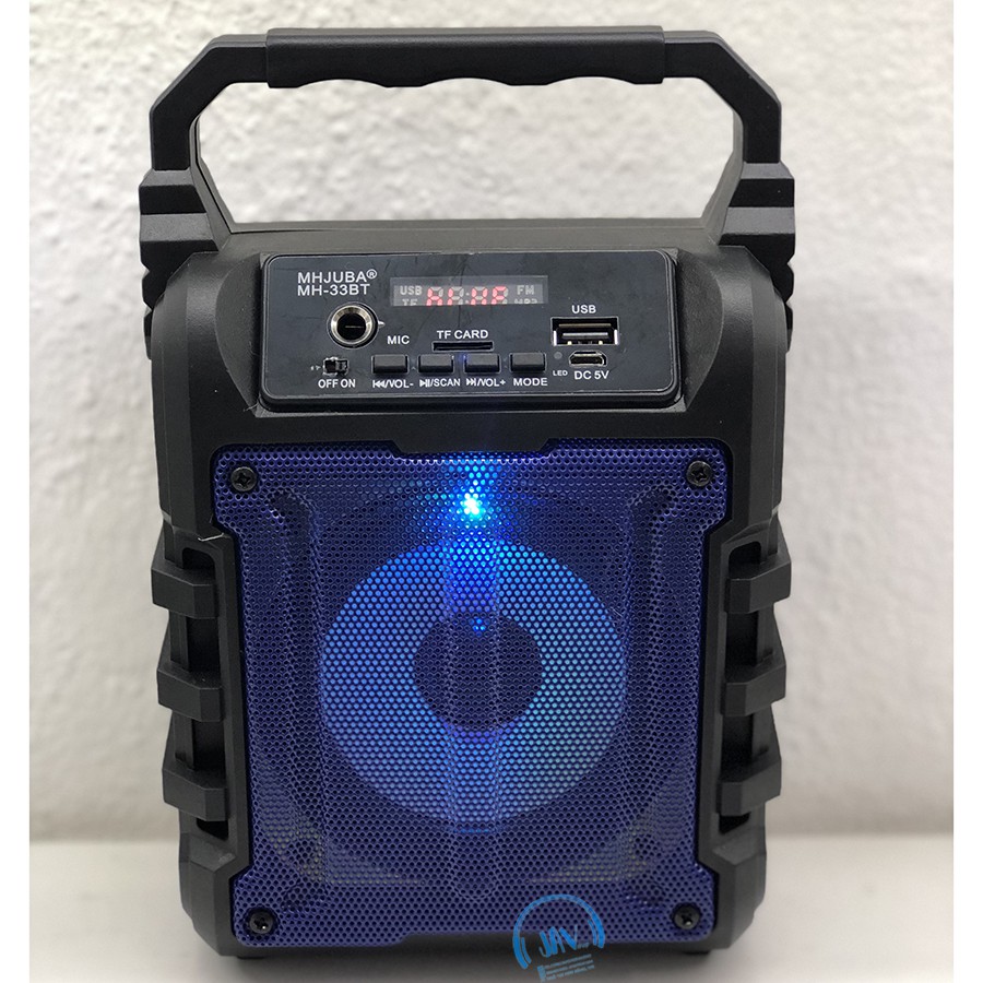 📌 Đối với Loa MH33bt, phía sau thân loa có khe đựng pin tháo lắp rời được. Nếu bạn có nhu cầu sử dụng lâu (như đi chơi xa) có thể sạc đầy pin và thay pin khi pin có sẵn hết điện, dùng được tầm 1 - 2h tùy âm lượng Loa bạn mở