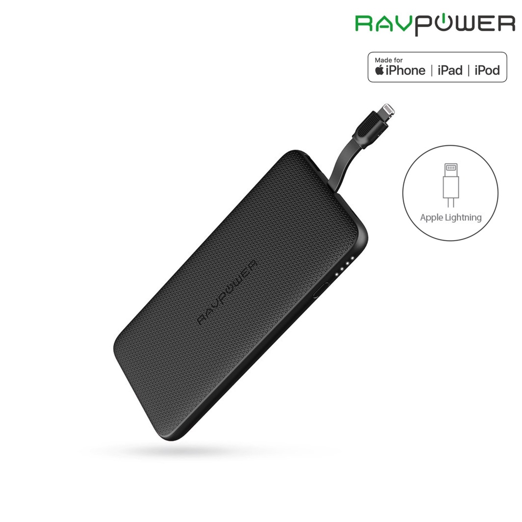 Pin Sạc Dự Phòng Tích Hợp Cáp Lightning Cho iPhone Chuẩn MFi - RAVPower - 10000mAh - 17W - RP-PB099 - Hàng Chính Hãng VN