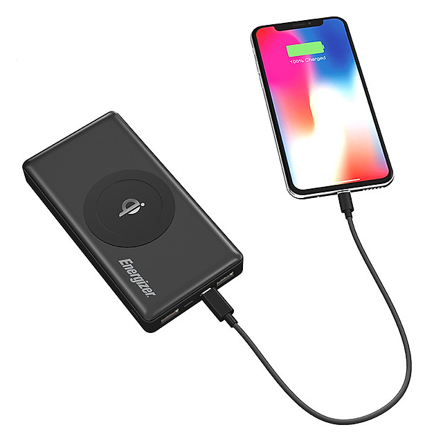 Pin Sạc Dự Phòng Tích Hợp Sạc Không Dây Energizer Thần Sấm QE10000CQ 10.000 mAh QC 3.0 Type-C PD chuẩn Qi tương thích với tất cả các thiết bị hỗ trợ sạc không dây.