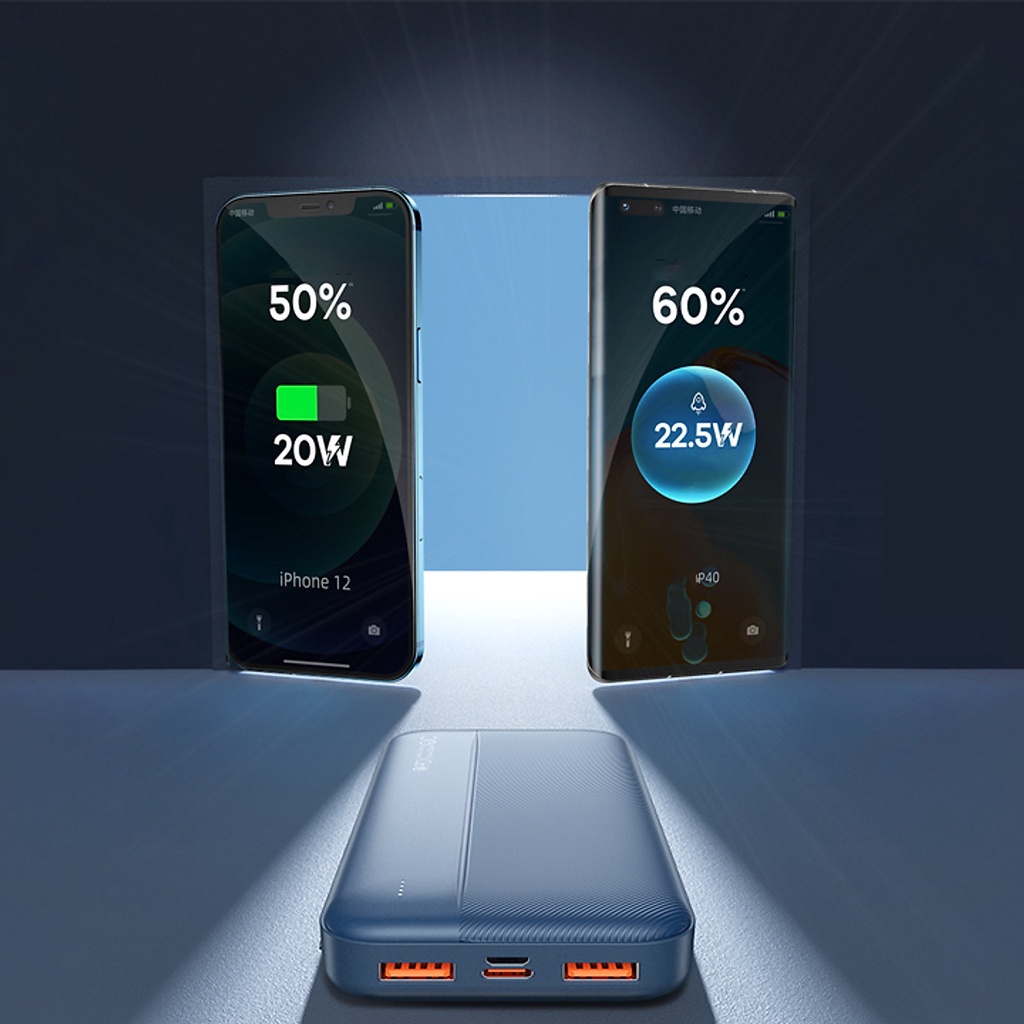 💥 Sử dụng lõi pin Polymer siêu bền. Trang bị 2 cổng sạc ra USB và 1 cổng sạc ra TYPE C 20W . Sạc cùng lúc 2 cổng sẽ là sạc thường, 4 chấm đèn Led hiển thị dung lượng pin. Màu sắc hạn chế trầy xước, chịu mài mòn, viên hơi cong, dễ cầm trong tay.