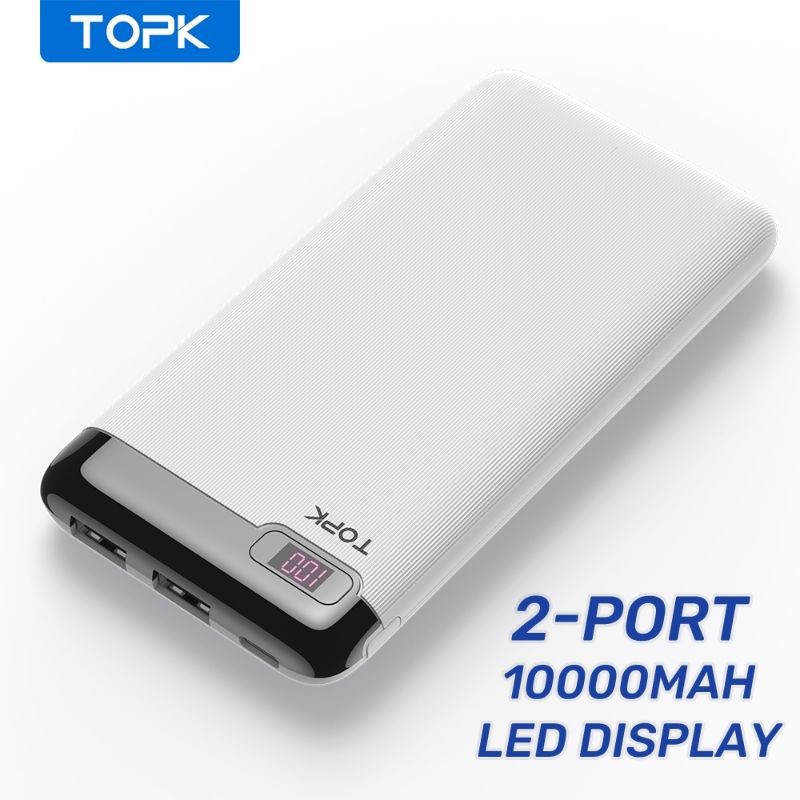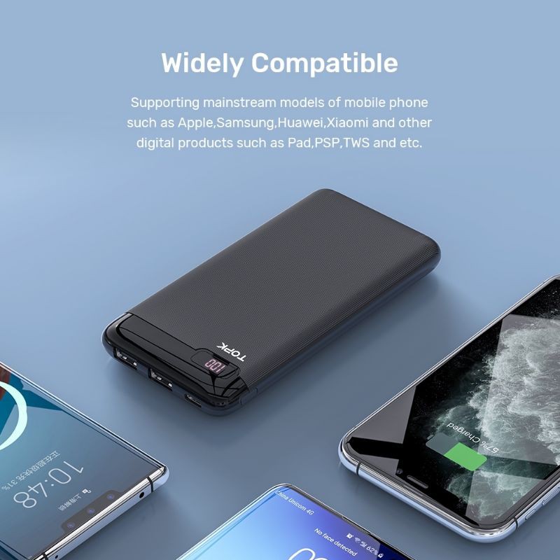 Pin Sạc Dự Phòng TOPK 10000mAh Có Đèn LED Cho Xiaomi Huawei iPhone 12 Samsung