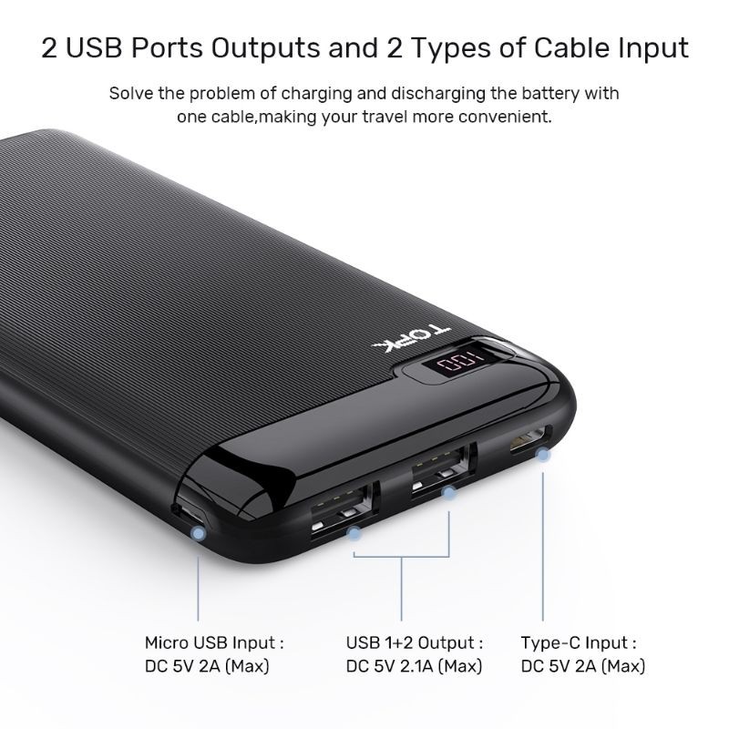 Giới thiệu Pin Sạc Dự Phòng TOPK 10000mAh Có Đèn LED Cho Xiaomi Huawei iPhone 12 Samsung