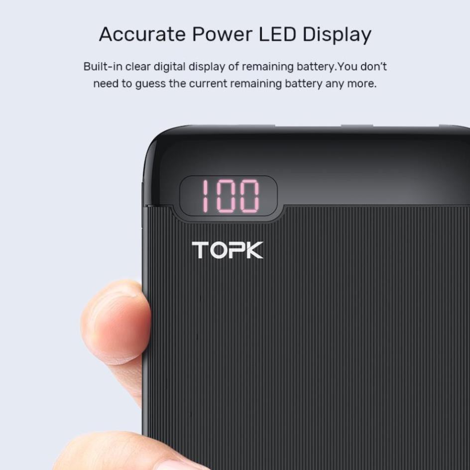 Pin Sạc Dự Phòng TOPK I1013 10000mAh Có Đèn LED Cho Xiaomi Huawei iPhone 12 Samsung
