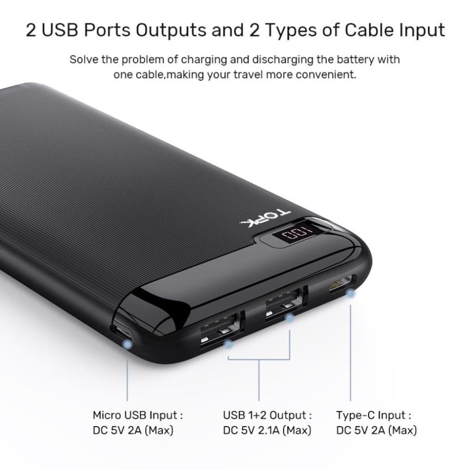 Giới thiệu Pin Sạc Dự Phòng TOPK I1013 10000mAh Có Đèn LED Cho Xiaomi Huawei iPhone 12 Samsung