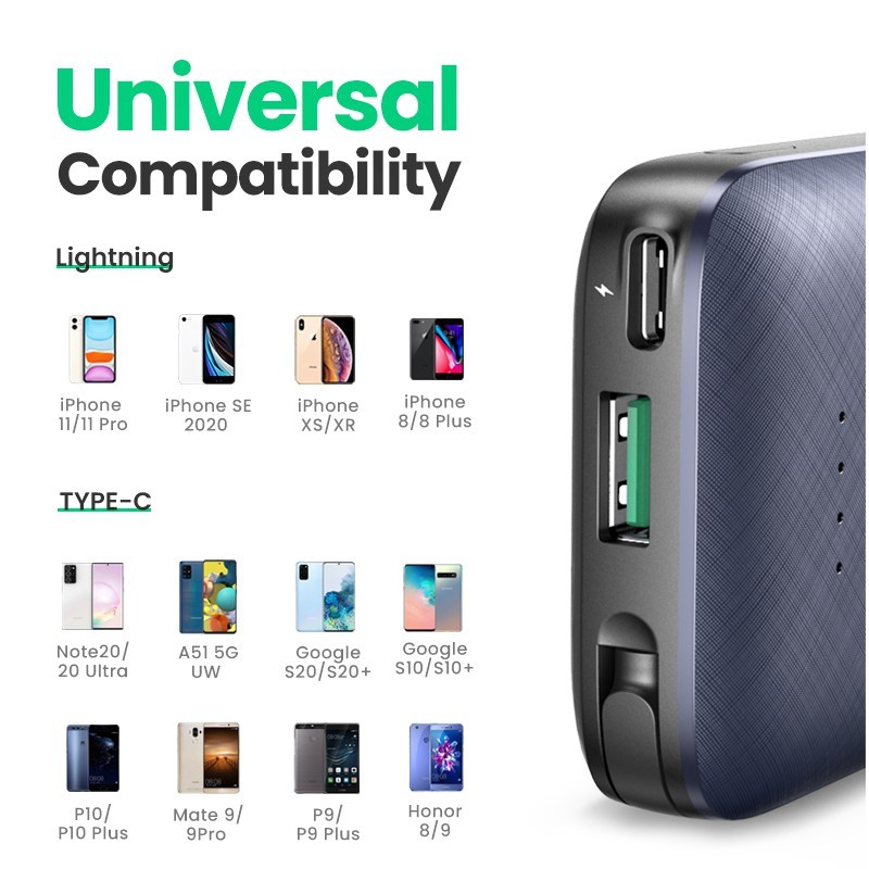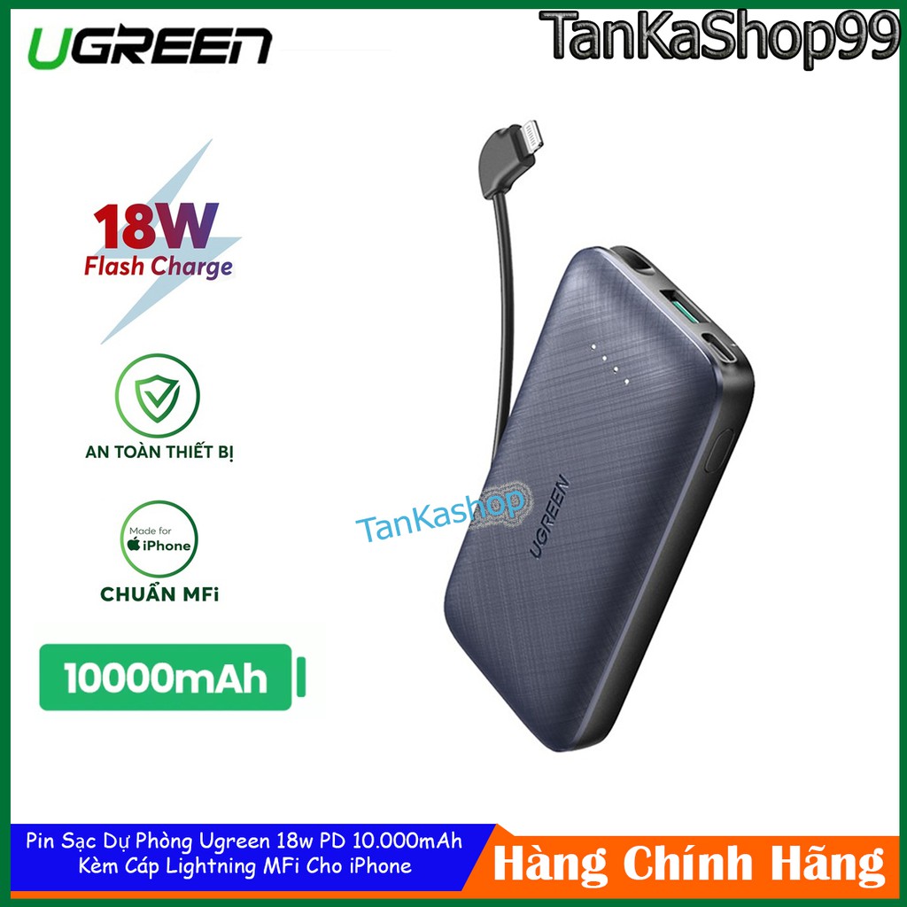 Pin Sạc Dự Phòng Ugreen 18w PD 10.000mAh Kèm Cáp Lightning MFi Cho iPhone, Sạc Nhanh PD 18W va QC 3.0