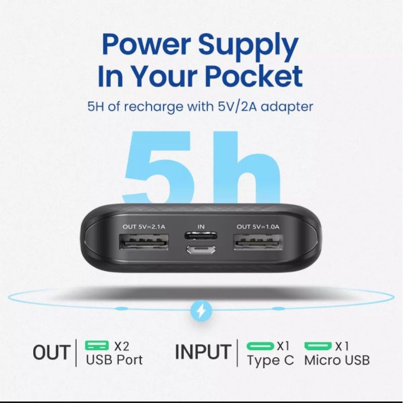 - Cổng sạc input: USB-A & USB-C (⚠Khi sạc chỉ có thể sạc duy nhất từ 1 cổng, không sạc cùng lúc 2 cổng)