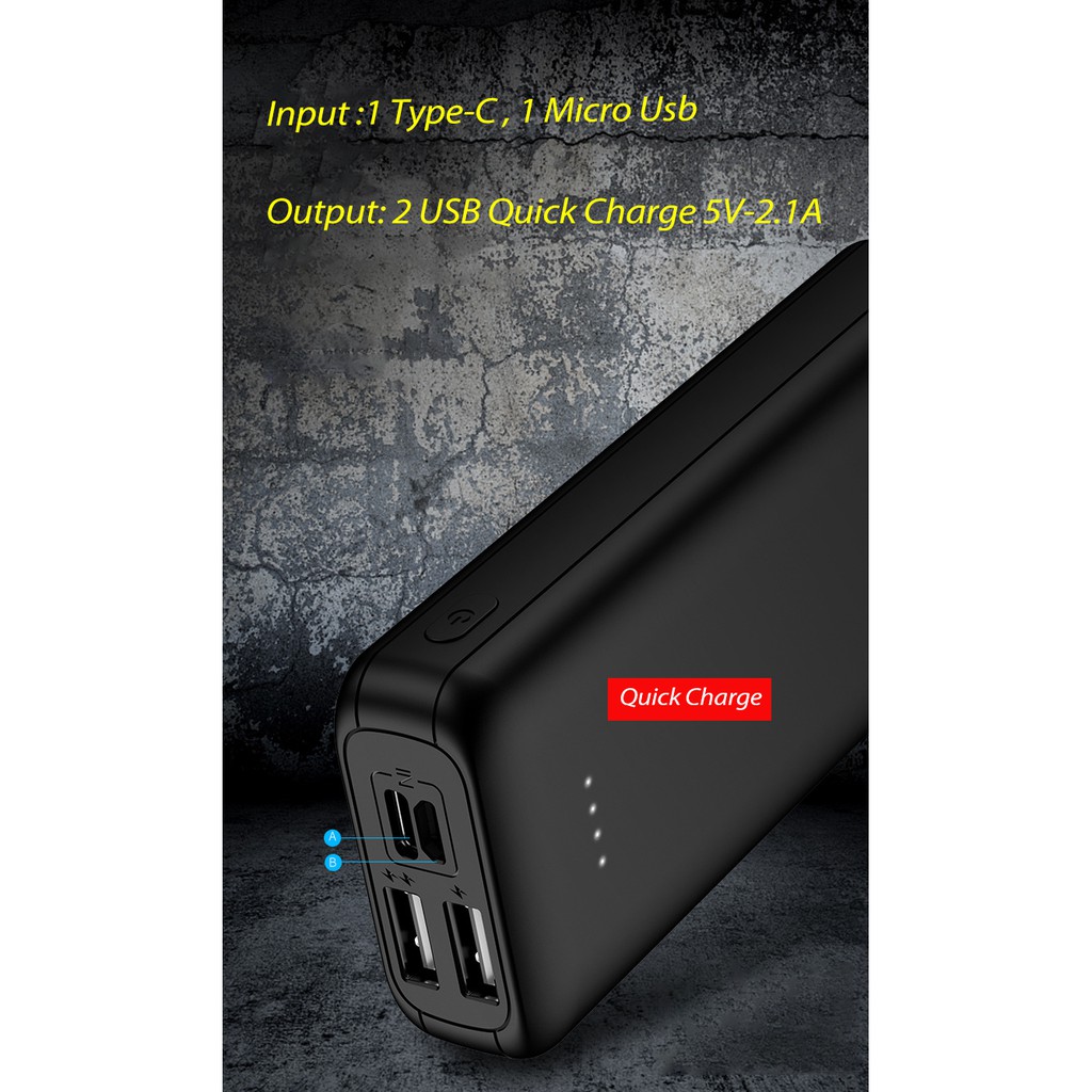 ☀ Bên cạnh đó còn có 2 cổng Input DC5V/2.0A giúp người dùng dễ dàng lựa chọn cổng vào phù hợp với chiếc cáp đã có sẵn. Đây là một thiết kế cực tiện lợi mà người dùng thấy được trên chiếc sạc dự phòng này.