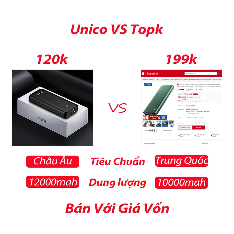 👍👍👍Đây là Sạc Dự Phòng Unico đạt tiêu chuẩn phụ kiện 3C của Châu Âu, được bán tại Tây Ban Nha và Ý, bao bì đẹp mắt với chất lượng đảm bảo.🆘🆘🆘Dịch bệnh đã làm giảm doanh số bán trên thị trường và sản xuất dư thừa, hiện được bán với giá vốn !