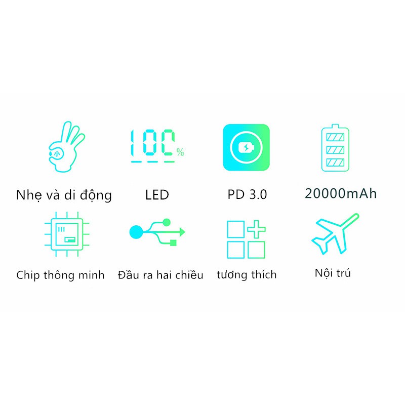+ Dung lượng: 20.000mah/3.7V 74Wh