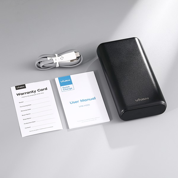 Pin Sạc Dự Phòng VIVAN VPB-H20S 20.000mAh, 3 Output & 3 Input 22.5W Quick Charge LED Hiển Thị Pin, kèm cáp sạcPin sạc dự phòng tích hợp cổng đầu vào và đầu ra chuẩn PD, cổng đầu vào Lightning, Micro và 2 cổng USB đầu ra, kèm cáp truyền dữ liệu sạc nhanh Type-C 3A siêu tốc.