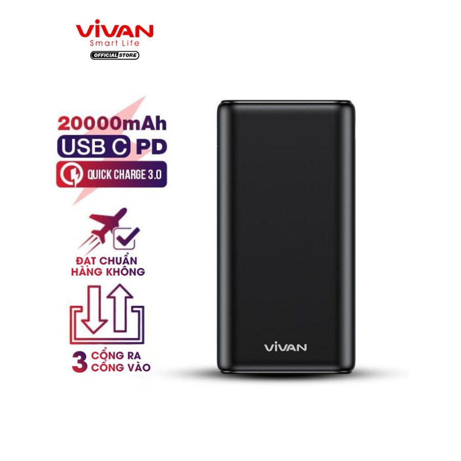Pin Sạc Dự Phòng VIVAN VPB-H20S 20.000mAh 3 Output & 3 Input 22.5W PD QC 3.0 LED Hiển Thị Pin - BH 12 THÁNG 1 ĐỔI 1