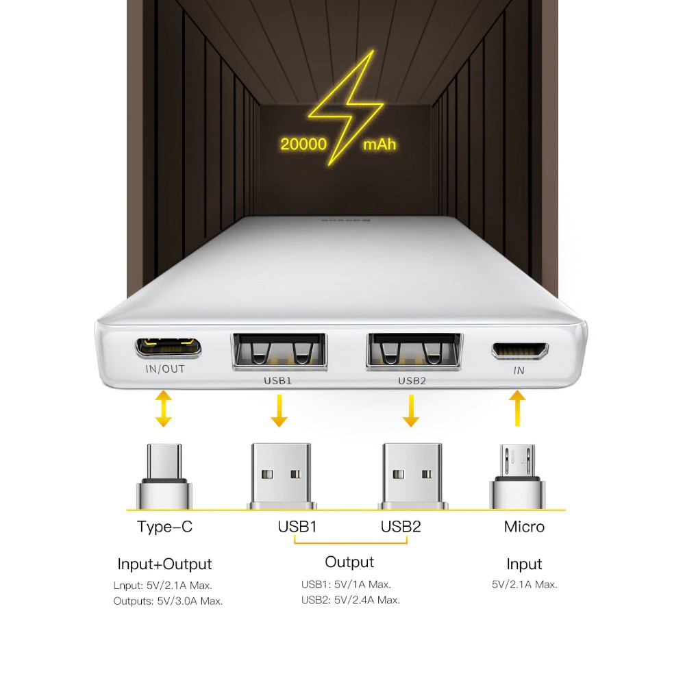 Pin Sạc Dự Phòng Với 2 Cổng USB 1 Cổng In Micro Và In And Out Tye C - Phân Phối Bởi Baseus Vietnam