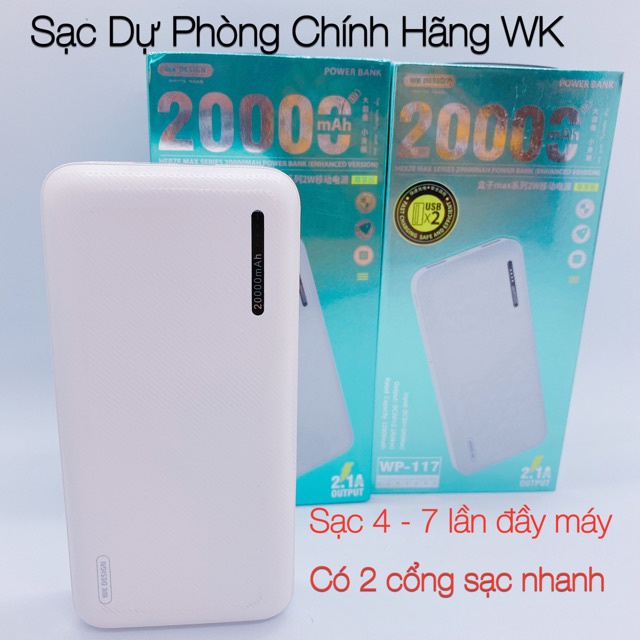 -Pin sạc dự phòng 20000mAh WP-117 có dung lượng lớn, với 2 cổng sạc tiện lợi