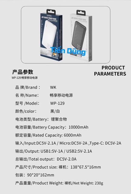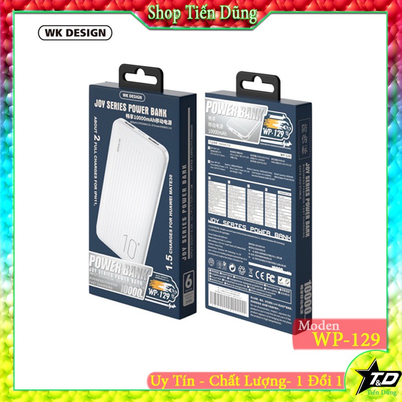 Pin sạc dự phòng 10000mAh WK DESIGN WP129 chính hãng.💛 THÔNG TIN CHI TIẾT VỀ SẢN PHẨM PIN WK WP-129: