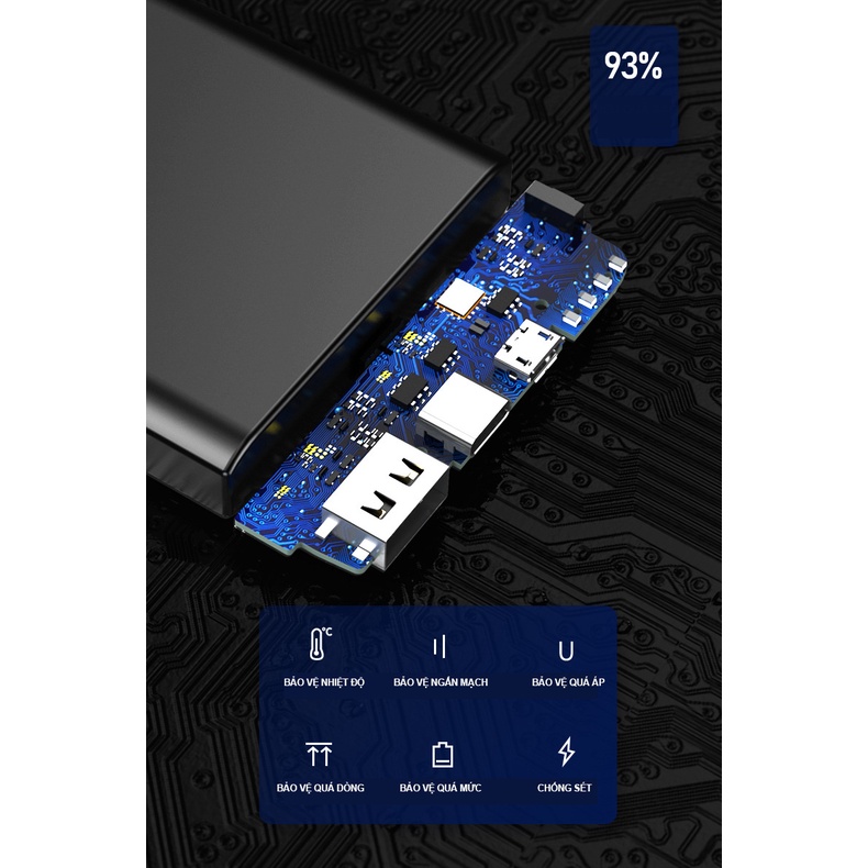 Phần lõi của pin có thiết kế đặc biệt giúp cho việc tản nhiệt dễ dàng hơn, kết hợp cùng với con chip thông minh kiểm soát dòng điện ra vào, bảo vệ pin sạc dự phòng không bị quá áp và quái tải nhiệt.