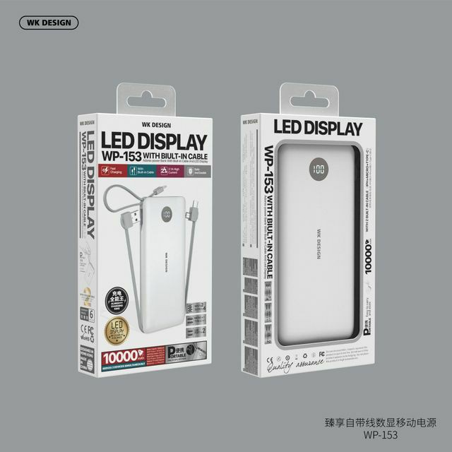 Điện Thoại & Phụ Kiện > Phụ kiện > Sạc dự phòng & Pin > Sạc dự phòng || Pin sạc dự phòng WK WP-153 10000mAh Tích hợp cáp 3 đầu IPhone/micro/Type C với màn hình LED Sạc nhanh .. !Còn hàng