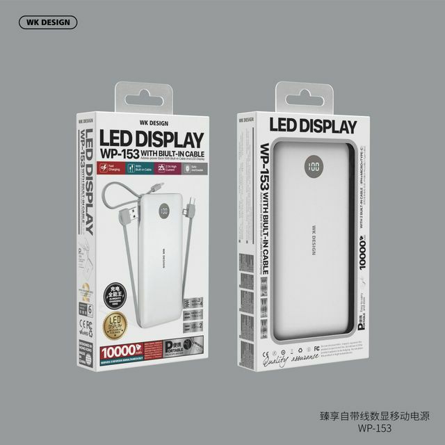 Điện Thoại & Phụ Kiện > Pin sạc dự phòng > 10000 - 20000mAh || Pin sạc dự phòng WK WP-153 10000mAh Tích hợp cáp 3 đầu IPhone/micro/Type C với màn hình LED Sạc nhanh .. !Còn hàng