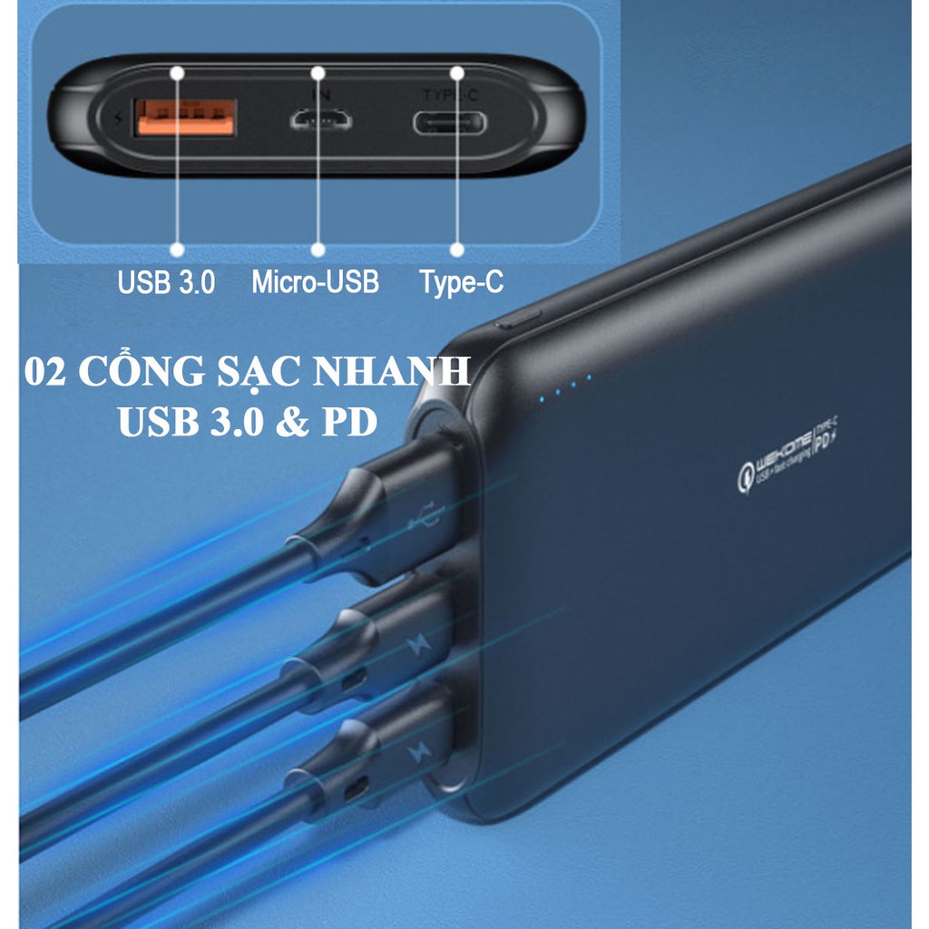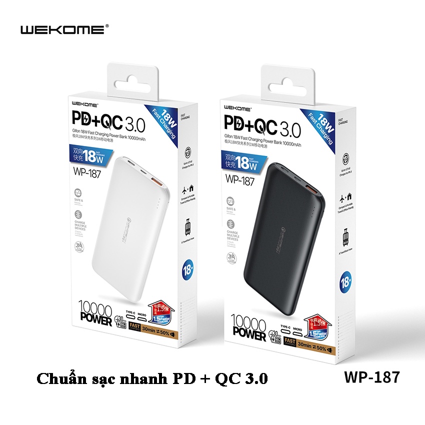 Pin Sạc Dự Phòng WP-187 10000mAh Sạc Nhanh PD 18W, Quick Charge 3.0 hỗ trợ tất cả điện thoại, Đa Năng Chính Hãng -BH 12T