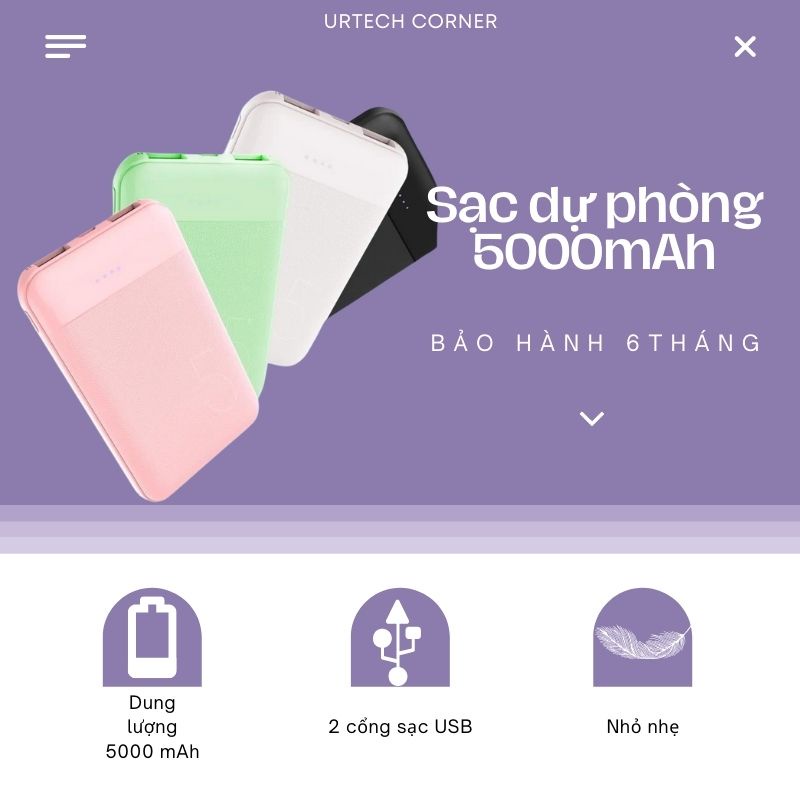 Giới thiệu Pin sạc dự phòng Wuw Y66 Urtechcorner giá rẻ dung lượng 5000mAh nnỏ gọn nhiều màu sắc thời trang